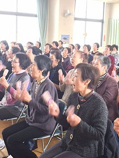 参加者のみなさんは、懐かしい歌や季節の歌を、一人では歌えないけれどみんなと一緒ならいいと大きな声で歌い、若い頃にもどったようにときめき、活き活きしていました。
