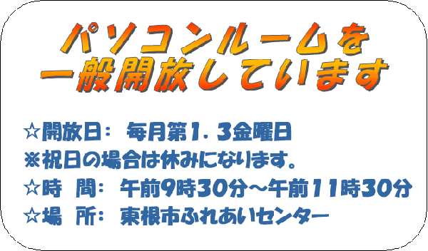社会福祉協議会では、ふれあいセンターにて、毎月第1,3金曜日の月2回、午前9時30分~午前11時30分にパソコンルームを一般開放しております。