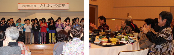 10月24日、花の湯ホテルにて単身高齢者「ふれあいの広場」を開催しました。民生委員児童委員の皆さんから一人暮らしの方に声をかけていただき、123名が参加されました。市内の一人暮らしの方が一堂に会して、レクリエーションや久しぶりに会った方との話に花を咲かせたり、自慢の歌を披露するなど楽しい時間を過ごしました。また、今年は、神町小学校の6年生が「ふるさと」等の歌や演奏を披露してくれました。最後に、子どもたちが、参加した皆さんにお手紙を手渡されました。子どもたちの一生懸命な姿やお手紙に涙を流す参加者の姿もみられました。 毎年、元気な皆さんにお会いできることを職員も楽しみにしております。