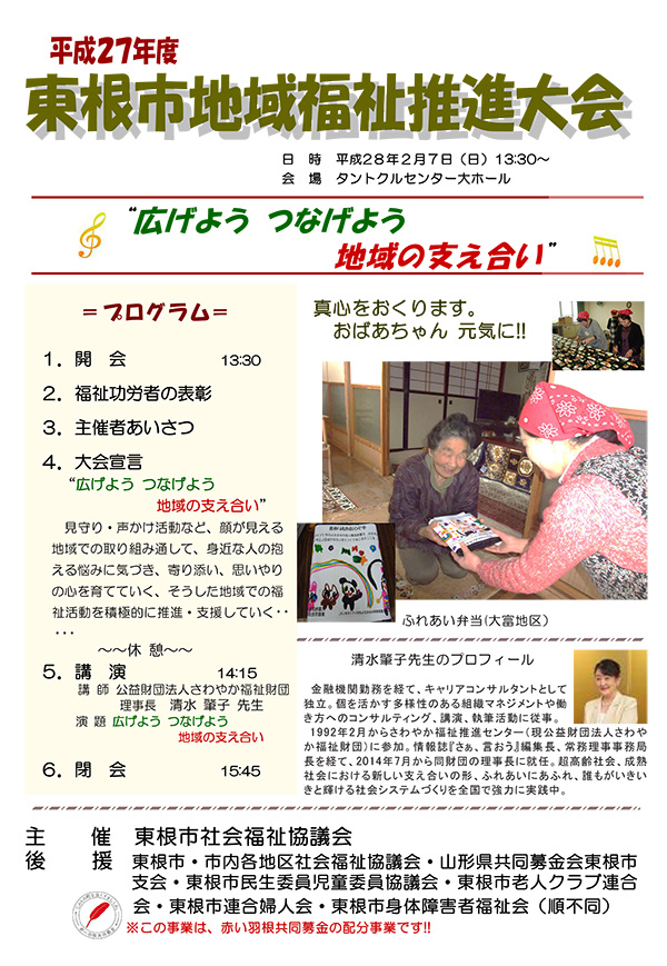 当日は、13時30分から東根市社会福祉協議会会長 表彰式を行います。