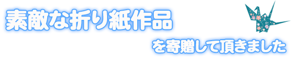 市民の福川サキ子さんより、折り紙で作られた色鮮やかな花束や素敵なリースなど、たくさんの作品を寄贈していただきました。福川さんは、「作品を装飾することで、少しでも雰囲気が明るく華やかになれば嬉しいです」との思いから、真心込めて作ってくださいました。