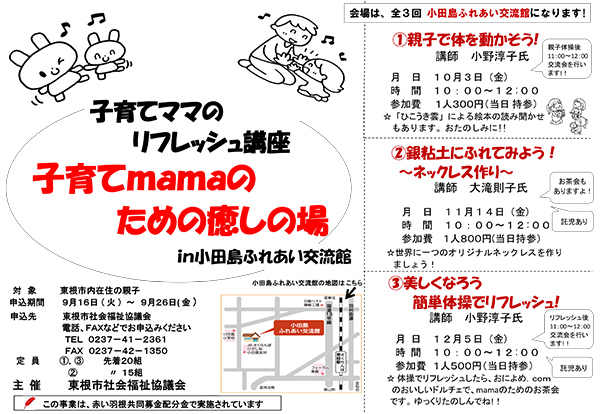 東根市社会福祉協議会では、子育て中の親子が仲間作りやリフレッシュできるような事業を実施し、子育て中の親子を支援していきます。