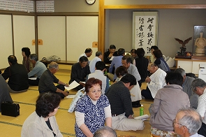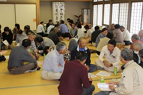 5月15日(木)、東郷地区の区長、民生委員児童委員、福祉推進員と社協職員の51名が一同に集まり、三者懇談会を開催しました。前半は、事務局長が「福祉推進員について」説明をしました。その後、地域ごとに分かれて、顔あわせ、情報交換、「福祉推進員の周知をどうするか」「三者の役割の確認」「見守り活動等の話し合い」について、活発に話し合われました。