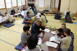 はじめに、「福祉推進員事業について」説明し、その後、福祉推進員設置区ごとに分かれて「今後の高齢者の見守り支援」について活発に話し合われました。