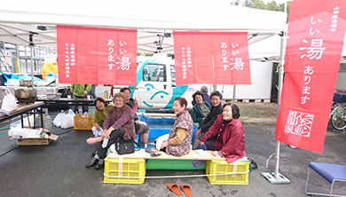「ふれあい足湯」は、東根温泉協同組合の協力により、東根市社協の入浴車などでさくらんぼ東根温泉の温泉を東松島市の応急仮設住宅の集会所や災害公営住宅、サロン活動等に運搬し、足湯を提供しております。また、東根市観光物産協会の協力により、リンゴジュースなどの東根市の名産を振る舞い、交流を図る活動で、今年で5年目になります。
