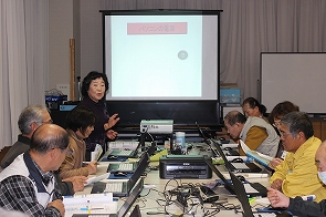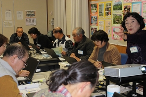 参加者は61歳から79歳の方まで幅広く、「地域の役員になったのでパソコンを覚えたい。」「認知症防止に申し込みした。」「インターネットを使って買い物したい」「孫とメールしたい」「今年こそは、パソコンで年賀状を作って出したい」などみなさんやる気にみちあふれています。