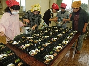 当日は、朝8時30分より、調理を始め、約40食の弁当を作りました。