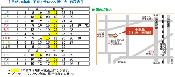 子育てふれあい交流館 子育てサロンの26年度のちらし