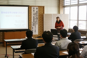 高齢化社会が進む中、講師の高橋明美先生から「認知症を学び 地域で支えよう」と題して、認知症の症状や接し方等、見守り声かけ、地域で支えるにはどうしたらいいか、具体的なお話を伺いました。