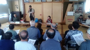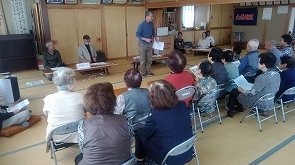 大林サロンにお邪魔しました。 10月12日(木)午後、東根地区の大林サロンにお邪魔しました。今回は、河北町の寸劇サークル「SKITかほく」をお招きし、「還付金詐欺」と「オレオレ詐欺」の寸劇をしていただきました。「SKITかほく」は、寸劇を通して地域社会に貢献したいと、河北町を拠点に活動しているサークルです。振り込め詐欺などの特殊詐欺や悪質商法による消費者トラブルの防止を目的に活動しており、寸劇の域を超えた公演をしてくださいました。