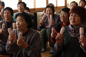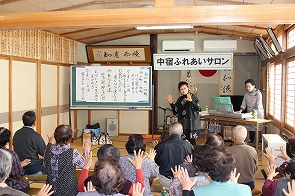 11月13日、小田島地区「中宿ふれあいサロン」にて冨樫さち子先生、吉田京子先生より「歌って、笑って楽しい時間」と題して、音楽をとおしての活動を行いました。ヤクルトの容器で作ったシェーカーやスティックを使ったり、懐かしい歌を歌うなど、参加者のみなさんは、若い頃にもどったように笑い活き活きしていました!!