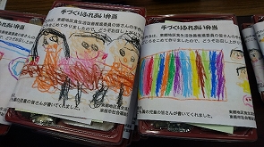 今回の弁当の包装紙は、東部こども園の児童のみなさんが、絵を描いて下さいました。