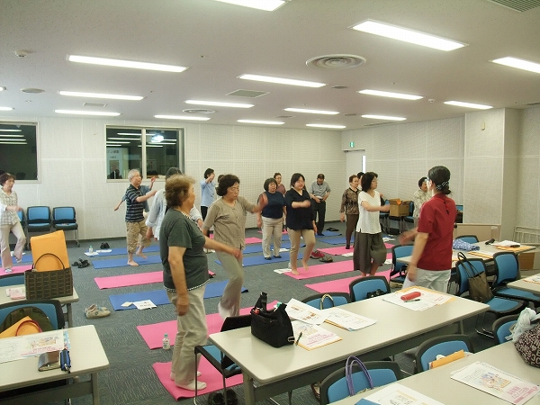 第1回目、第2回目ともに『美腸生活を目指そう!』をテーマに医療法人社団明山会山形ロイヤル病院の理学療法士の落合悦子氏と長岡大起氏、管理栄養士の田宮光子氏、八鍬さつき氏から講話や実技指導をしていただきました。