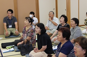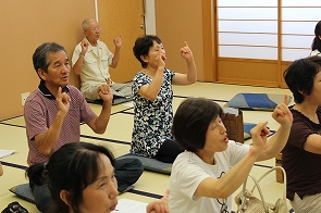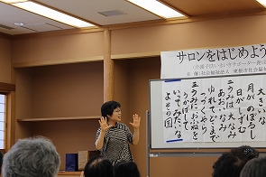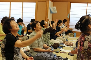 7月31日、サロンをはじめよう講座2日目、音楽療法士の冨樫さち子さんを講師に「歌って、笑って、楽しい時間」を開催しました。
