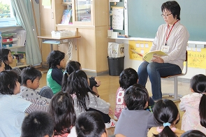 10月24日(金)午前8時20分から中部小学校にて、読み聞かせサークル「ぽっかぽか」(代表 松田 顕子さん)による子どもたちへの絵本の読み聞かせがありました。平成13年から月に2~3回活動しているそうです。