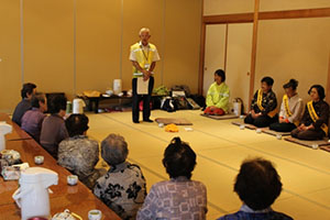 9月27日、いきいきデイサービスに、市生活環境課や村山警察署などから交通安全キャラバンの方々が見えられました。反射材などをいただき、交通安全を呼びかけられました。