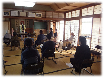 今回は、訪問看護ステーションにじの荒木敬子所長さんをお招きして、在宅医療や看取りに関するお話をしていただきました。 みなさん、真剣にお話を聞いていたようです。