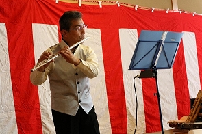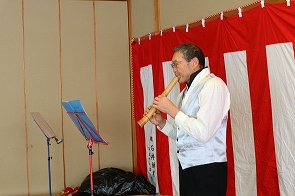 洋楽器のフルートと和楽器の尺八が見事にハーモニーを奏で、心に響く「絶妙な音色」に観衆の皆さんはうっとりと聞き惚れていました。また、楽曲も日本を代表するものからテンポのいい洋楽までバラエティに富んでおり、軽妙なトークと相まって、あっと言う間の1時間ちょっとでした。特に、参加者全員で「月の砂漠」や「ふるさと」を大声で歌って、日頃のストレスを発散するとともに、音楽の持つ素晴らしさを再認識したところです。終わってもまた聞きたくなるような気持ちは私だけだったでしょうか…。
