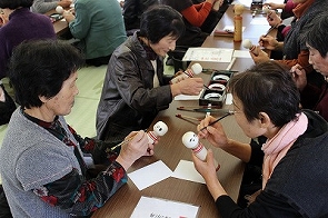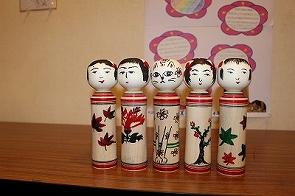 鳴子では、こけしに絵付け体験を行い、みなさんそれぞれすてきなこけしができあがりました!