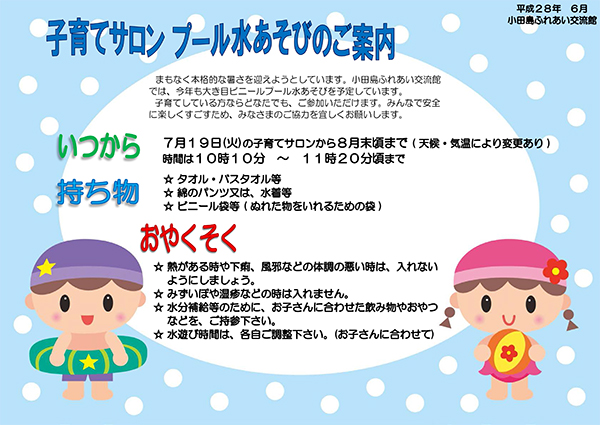 子育てサロン プール水あそびのご案内