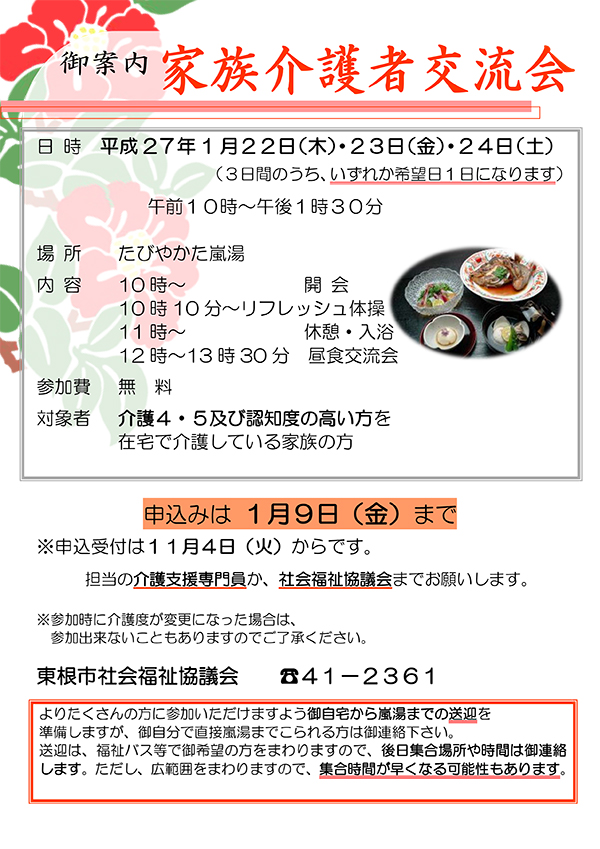 参加者募集 第三回 家族介護者交流会を開催します!!