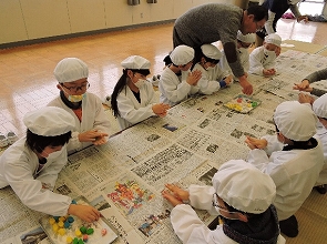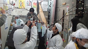 1月24日(水) 高崎公民館で、高崎小学校の児童のみなさんと高崎地区の老人クラブのみなさんの協力で、『だんご木』を作って頂きました。