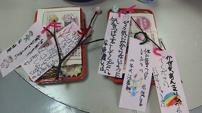 『だんご木』には短冊が添えてあり、児童のみなさんが温かいお手紙を書いて下さいました。